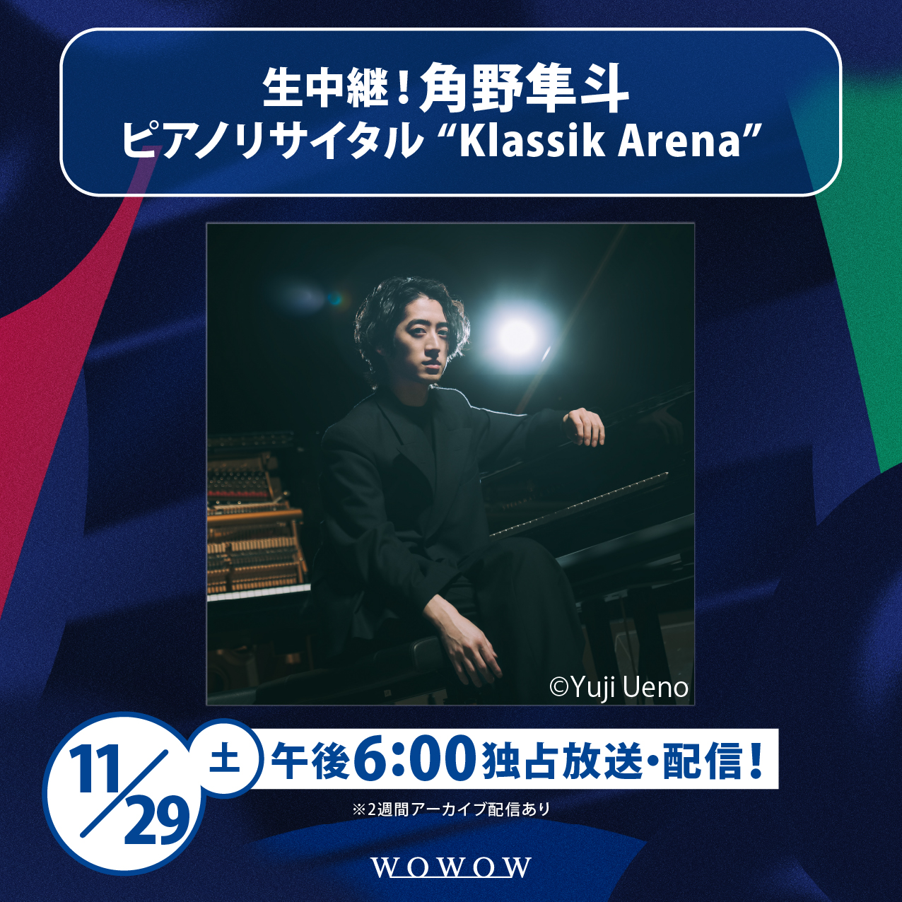 11月29日(土) 開催の「角野隼斗 ピアノリサイタル “Klassik Arena” supported by ロート製薬」がWOWOWにて独占生中継で放送・配信が決定しました。さらに今回、WOWOWオンデマンドでは初となるDolby Atmos®(ドルビーアトモス)によるイマーシブオーディオの生配信を実施!すでにソールドアウトとなっている本公演、その会場の熱気をぜひWOWOWの生中継で体感してください。
